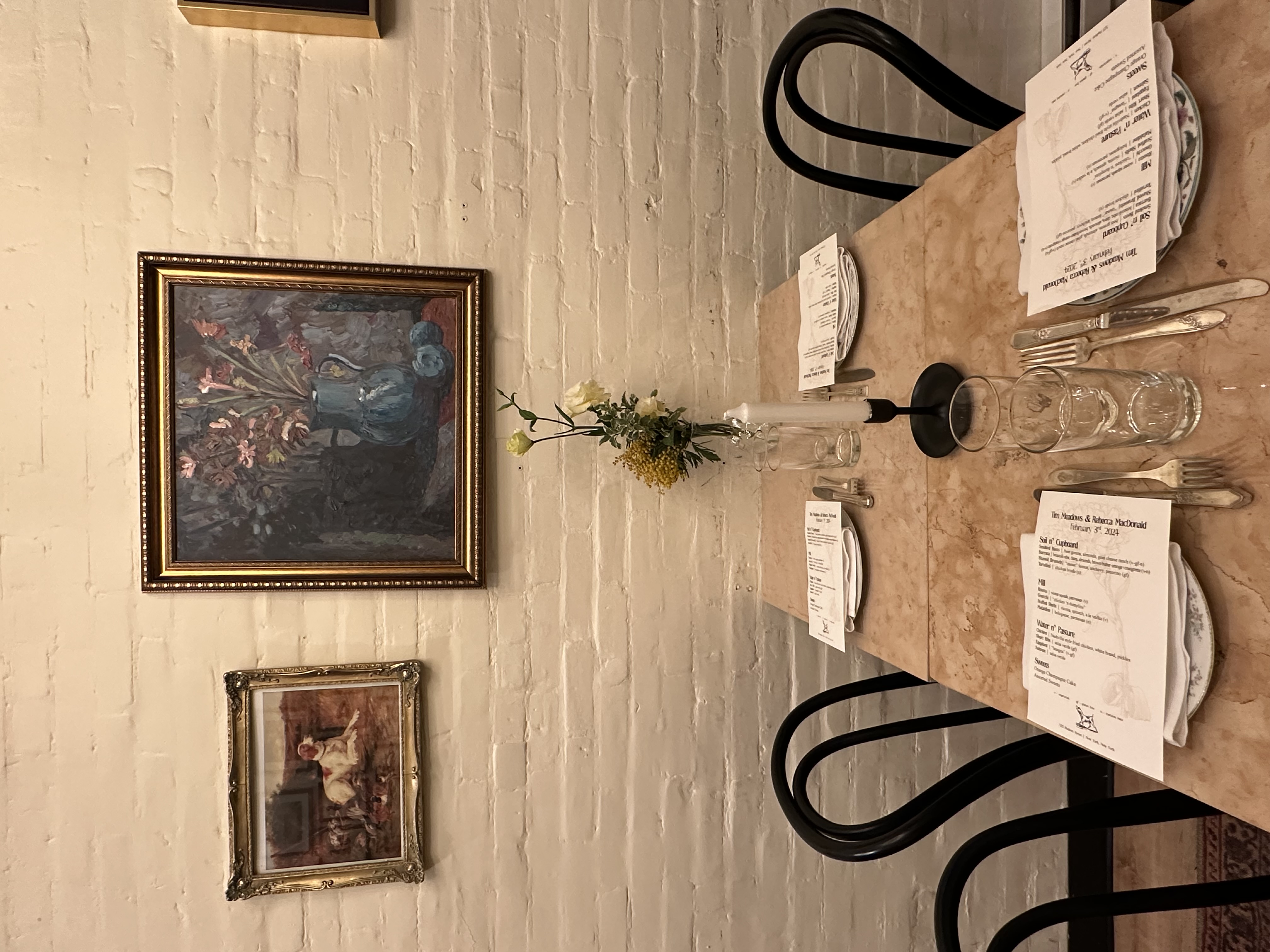 Bird Dog is a West Village Southern-Italian supper house built to feel like someone’s grandmother’s attic—warm, mismatched, soulful, and meant for gathering. Our spaces are flexible and intimate: a private dining room for up to 12 guests, a larger dining space that seats up to 22 at one table (30 seated overall), and the ability to host up to 40 for a standing cocktail-style celebration.