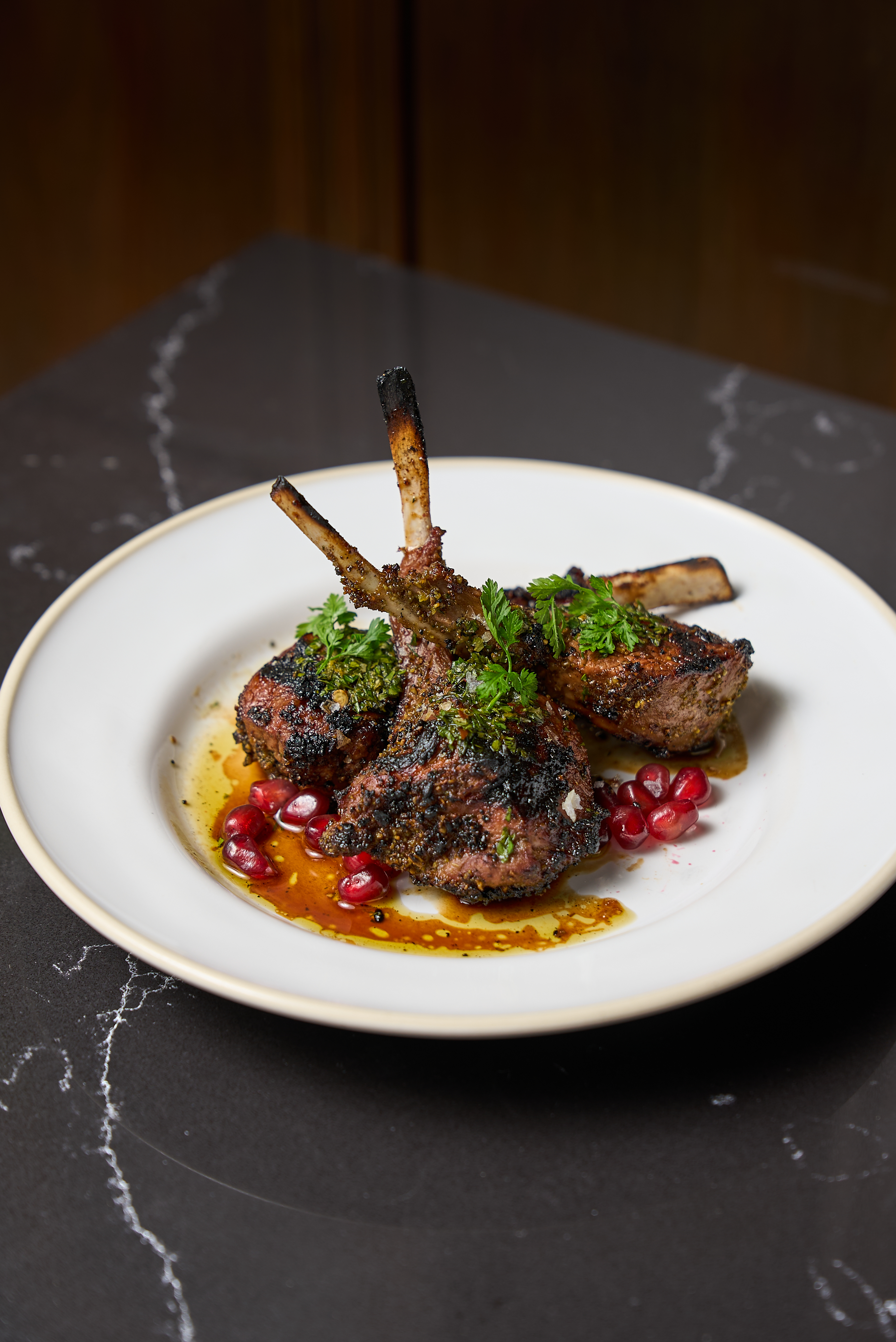 Book our intimate Mezzanine space, perfect for groups up to 22 seated or 30 for receptions. This private alcove features plush leather banquettes, black marble tables, and ambient lighting that sets the tone for memorable experiences. With windows overlooking 7th avenue, guests enjoy a dynamic backdrop that shifts from sunlit afternoons to twinkling urban evenings.