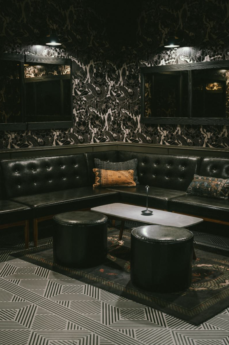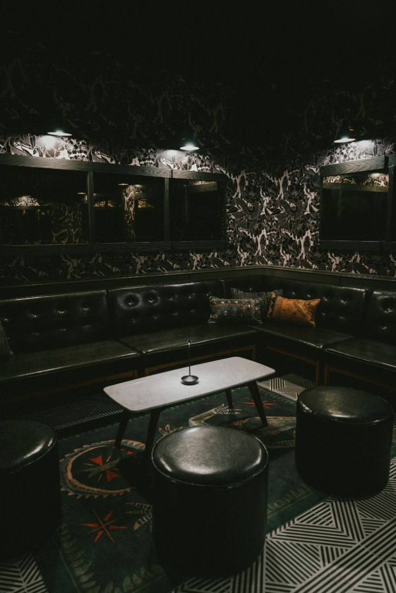 Little More's hidden gem — a fully private speakeasy tucked behind a faux bookshelf. The room features a private bar, leather banquette seating, and exquisite decor. Your group gets complete privacy, your own dedicated staff, and full control over the vibe: bring your own DJ or curate your own playlist, and build a custom food and drink menu. You're booking Little More's exclusive underground speakeasy — a private, fully-staffed hidden room with its own bar. Your event starts at a $3,000 minimum spend.