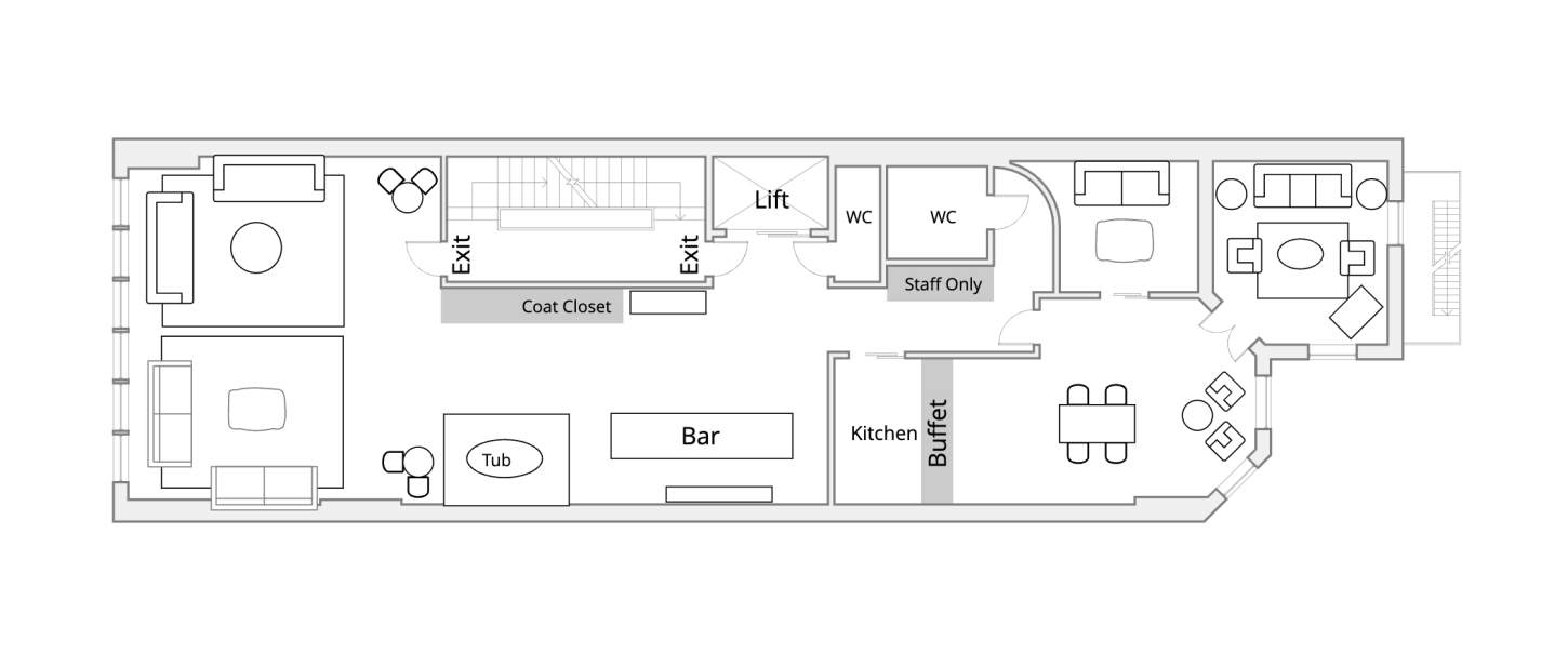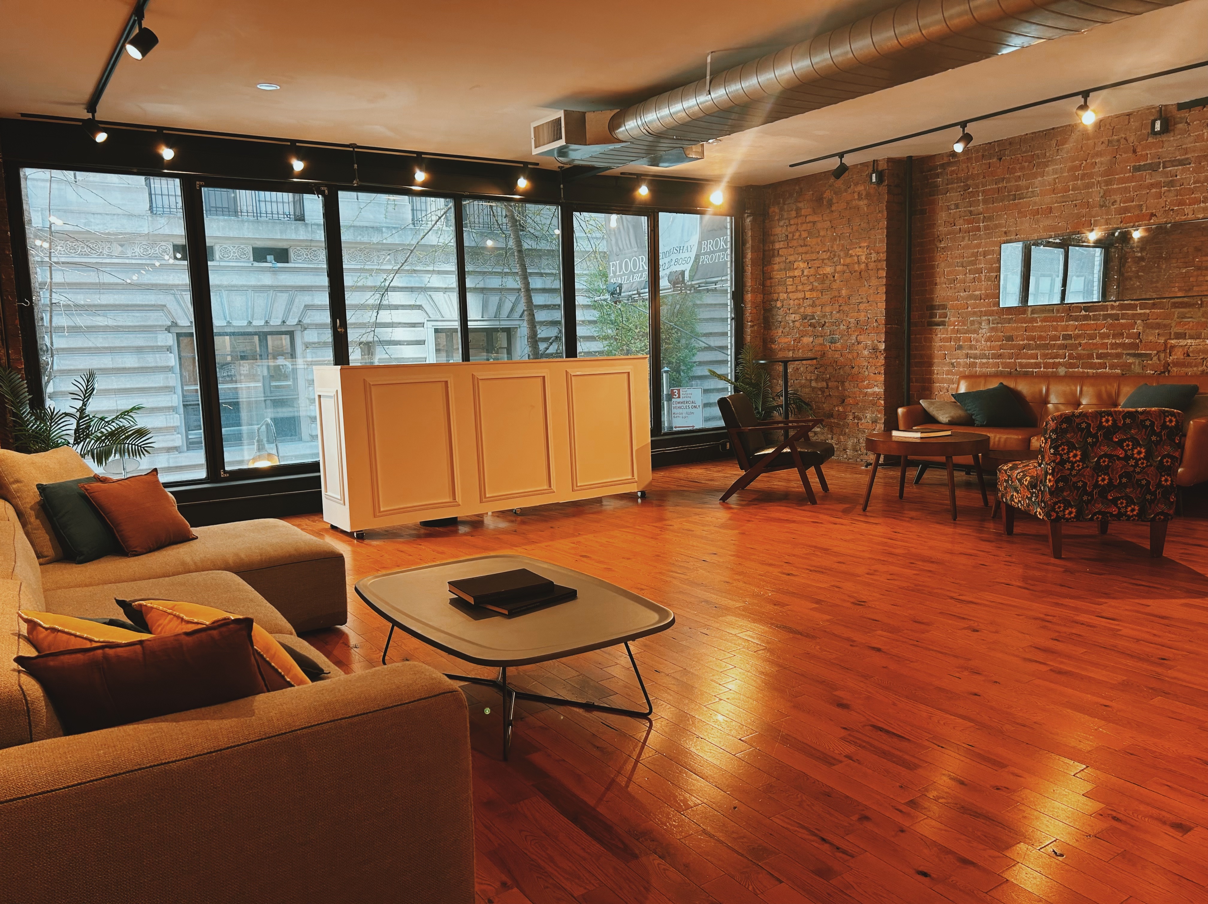 Standing Capacity: 150 Seated Capacity: 75 This inviting space in the heart of Midtown Manhattan's Garment District is characterized by its warm, intimate speakeasy vibes with touches of European and industrial influences. With an impressive 2,500 square feet of usable space, we can comfortably seat up to 75 people or host up to 200 standing guests. Exposed brick walls, hardwood floors, and plush furniture lend an inviting ambience to the venue, perfectly suited for cocktail parties, networking events, after parties, holiday parties, birthday celebrations, office parties, bar/bat mitzvahs, or even a bachelor/bachelorette party. Our amenities ensure that you have everything you need to host an unforgettable event!