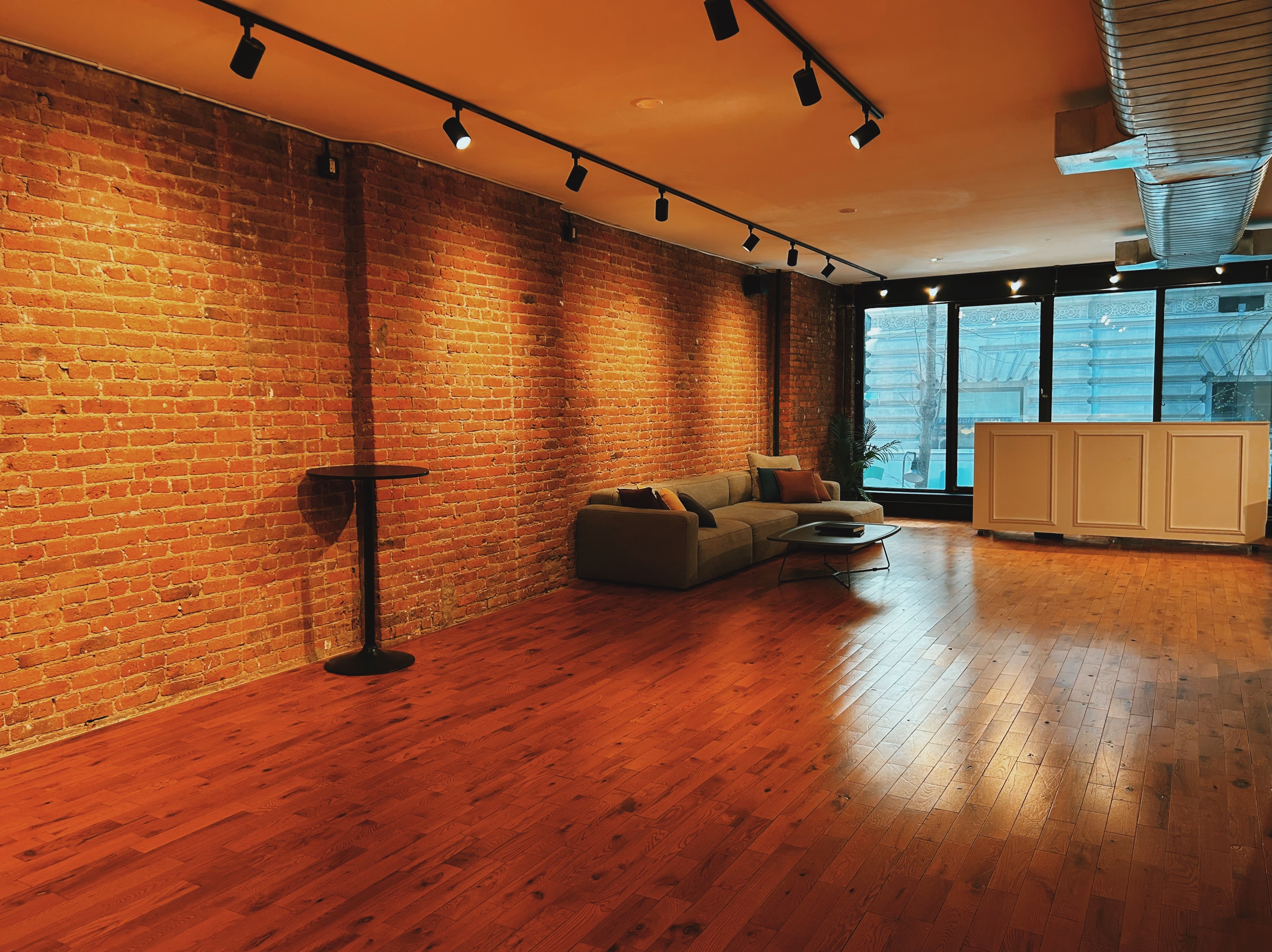 Standing Capacity: 200 The 2nd floor Studio loft is the perfect venue for all kinds of events, boasting 2,500 square feet of exposed brick, hardwood floors, and clean white walls ready to be transformed to meet your vision. The space can accommodate up to 150 standing guests, and is ideal for cocktail parties, corporate events, fashion shows, product launches and showcases, film or photography shoots, and more.